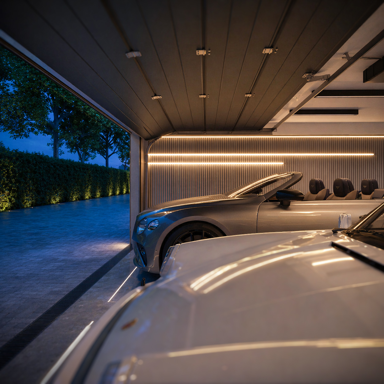 A garage connects the outside world with the sanctuary of your home, providing a sense of arrival. Picture being welcomed by sophisticated lighting and soothing music every time you return – as if your home is giving you a warm embrace. These carefully considered details turn your garage into a retreat of relaxation and hospitality. Discover how an exquisitely designed garage can enhance your living experience – a space where comfort and elegance blend seamlessly, making you feel genuinely at home with each arrival.