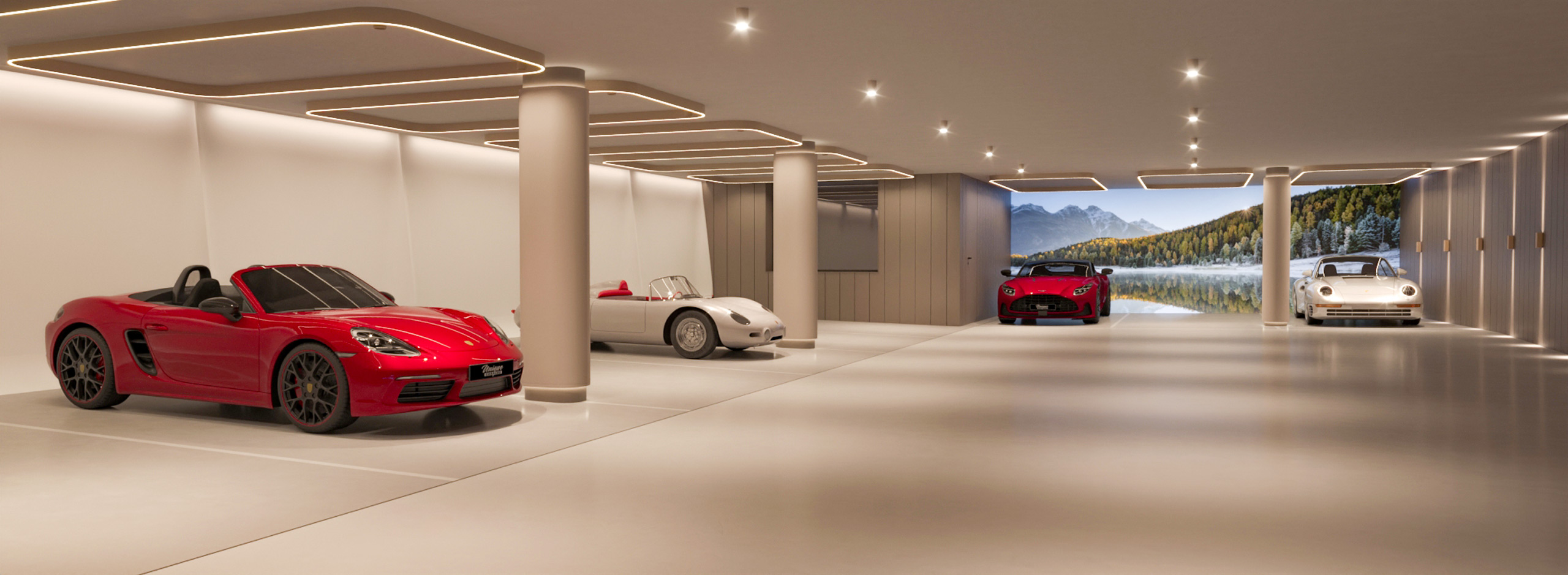 The owner of this villa in Switzerland was in the midst of a full renovation. His actual car collection has a home elsewhere. This garage was meant to be something different — not a stage for rarities, but a garage for everyday life. Used by the family, by the nanny, by guests. Designed with care, but without pretence. No excess for the sake of it.